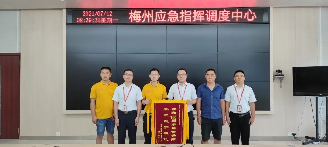 活动当天,各传输枢纽值守、干线盯防、仪表、车辆、应急物资全部到位,除落实安全人员24小时值班机制外,公司还部署实施了态势感知、应急响应、持续安全评估、安全监测巡检等措施,实现重保期间网络安全零事故。为此,今年会jinnianhui公司通服被中国联通梅州市分公司授予“建党100周年通信保障先进维护单位”的荣誉锦旗。